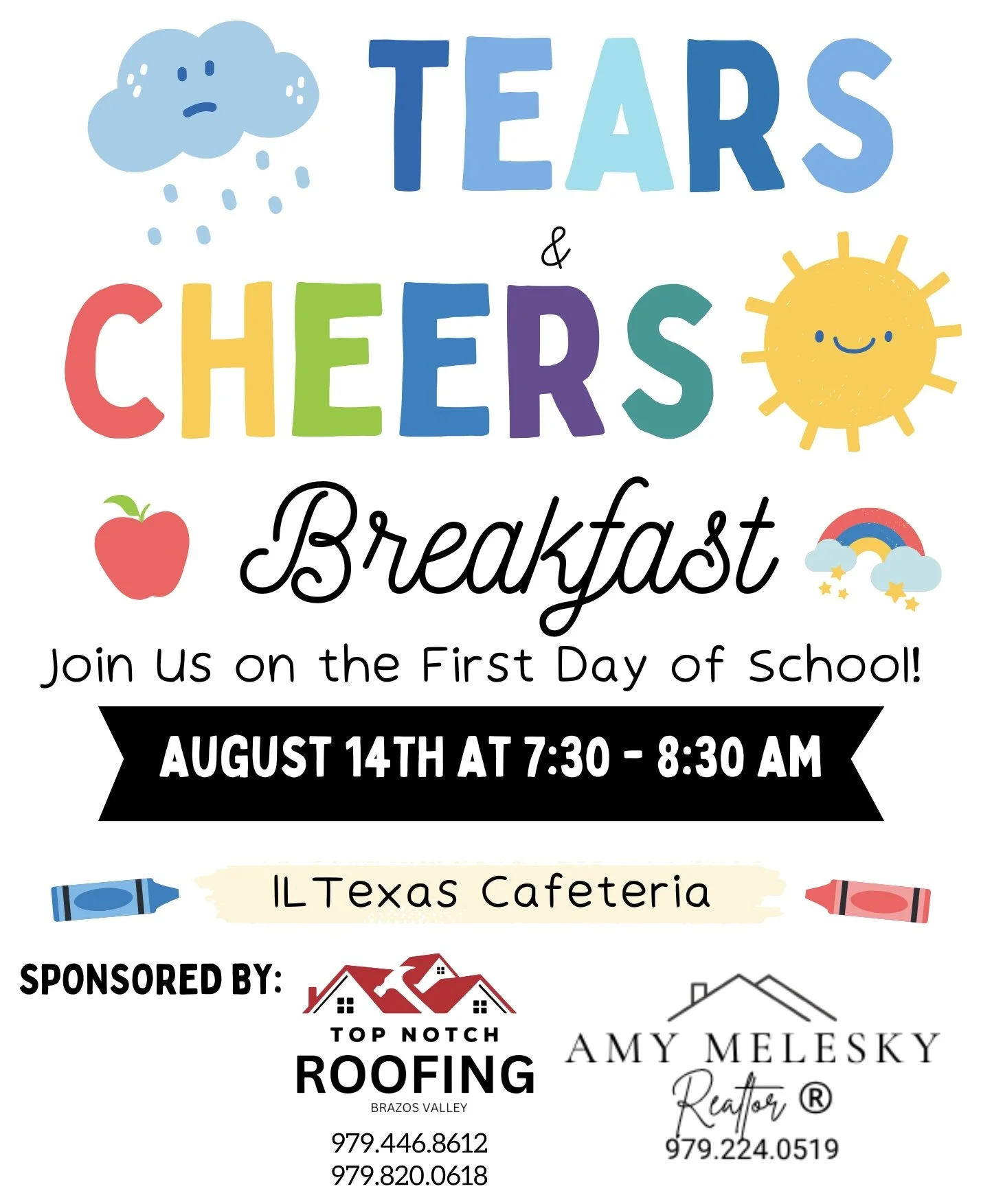 The first day of school can be emotional—and ILTexas PTO is here for you! Whether you're shedding a few tears or cheering your little one on, all Pre-K and Kindergarten parents are invited to join us for our Tears & Cheers Breakfast.